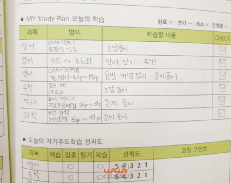 학생마다 다른 학습 상황에 맞춰 개인 플래너로 하루 학습을 관리.